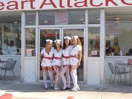 Las Vegas jest idealnym miastem dla ludzi którzy uwielbiają ryzyko. Tamtejsze kasyna są sławne na całym świecie. W ostatnim czasie było jednak głośno nie o nich ale o pewnej bardzo kontrowersyjnej restauracji Heart attaca grill czyli grilowy atak serca słynie z serwowania ekstremalnie kalorycznych dań. Specjalnością zakładu jest hamburger o nazwie poczwórny bajpas który składa się z kilku kawałków wołowiny, 20 plasterków boczku i specjalnego bardzo tłustego sera. Taki specjał waży niemal kilogram i zawiera niemal 8 tysięcy kalorii, lokal oferuje również smażone na smalcu frytki oraz różnego rodzaju maślane koktajle. Wszyscy pracownicy Heart attaca grill noszą lekarskie kitle a kelnerki przebrane są za pielęgniarki.
